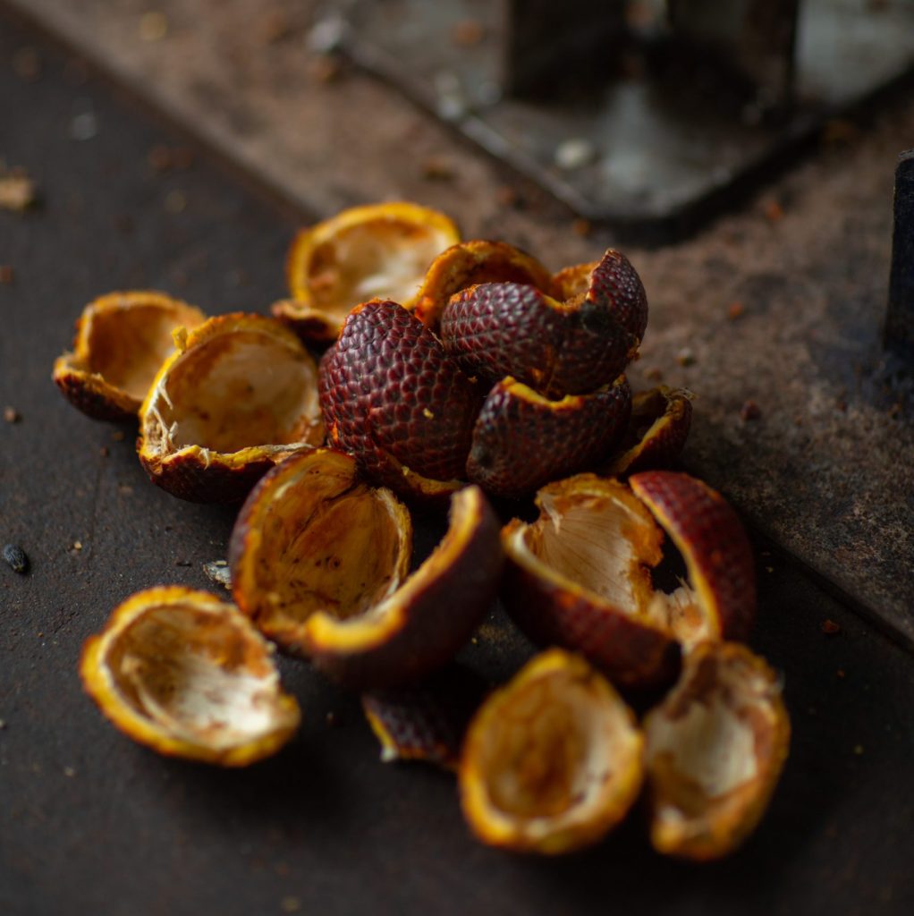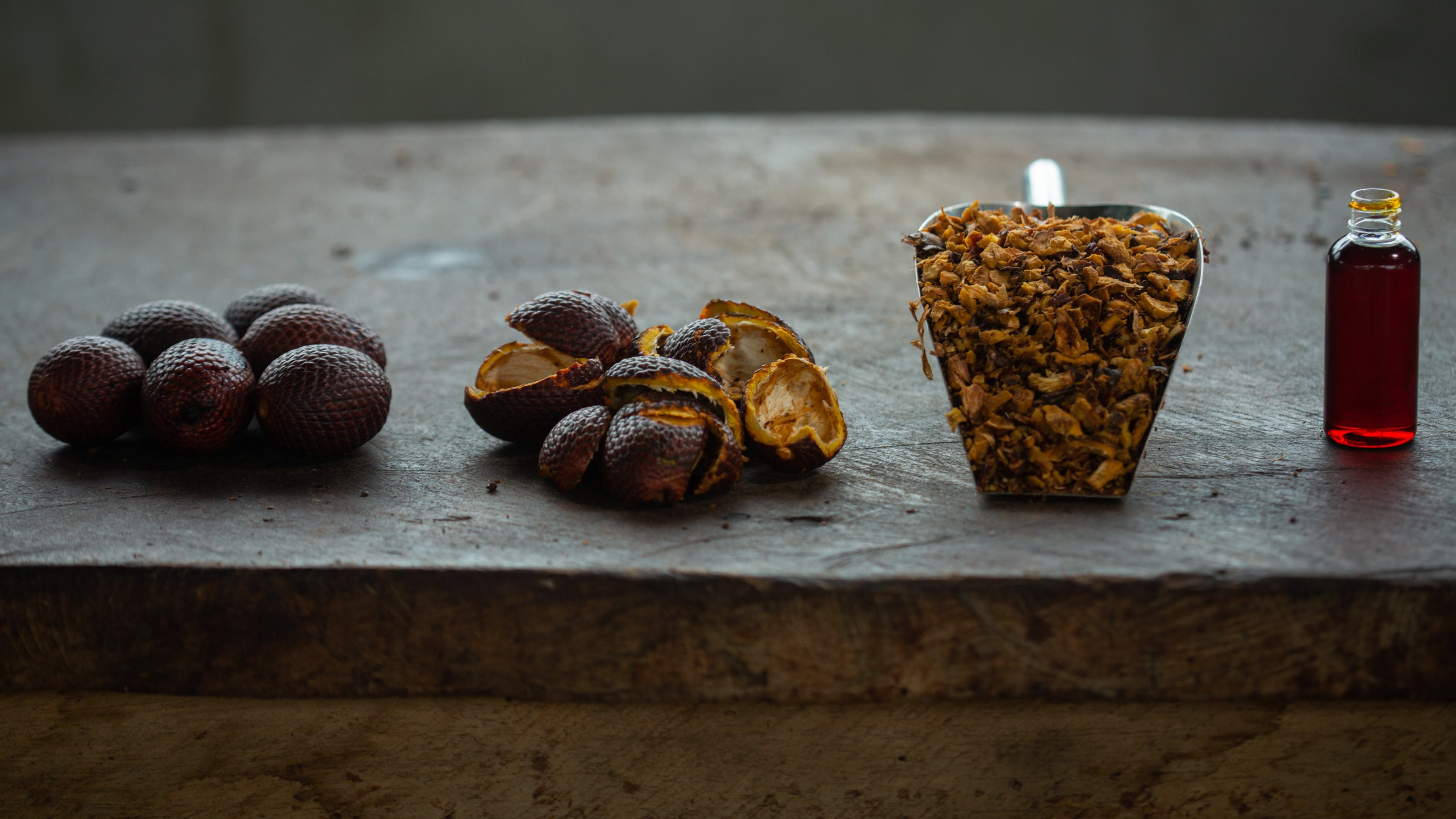 Once harvested, the outer scales and husk of the Buriti fruits are removed to reveal the inner pulp and seed. The pulp is separated from the seed, as the pulp is the one containing the oil.