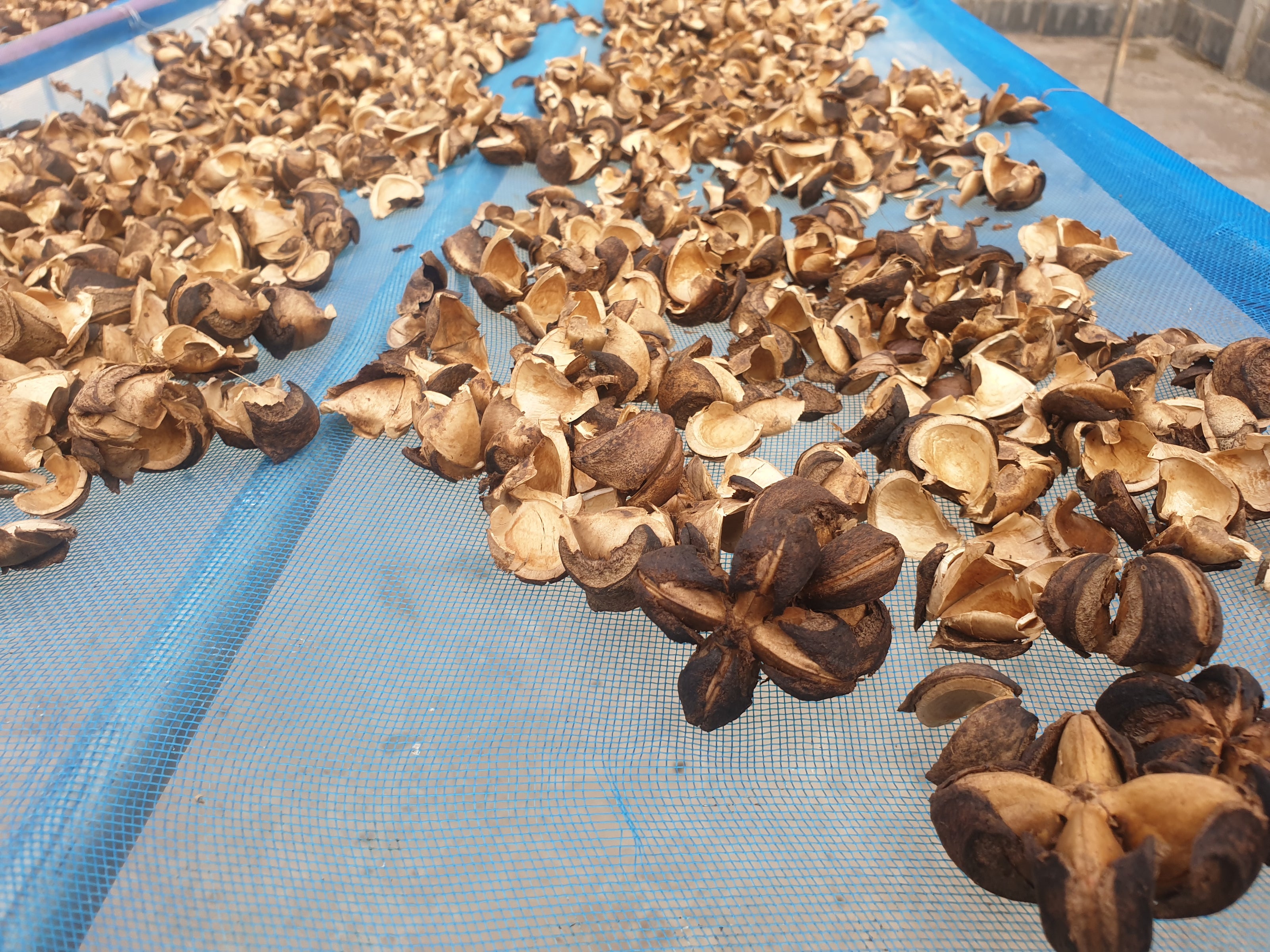 The extracted seeds are spread out to dry. Drying is important to reduce the moisture content of the seeds, which helps prevent spoilage during storage and subsequent processing.
